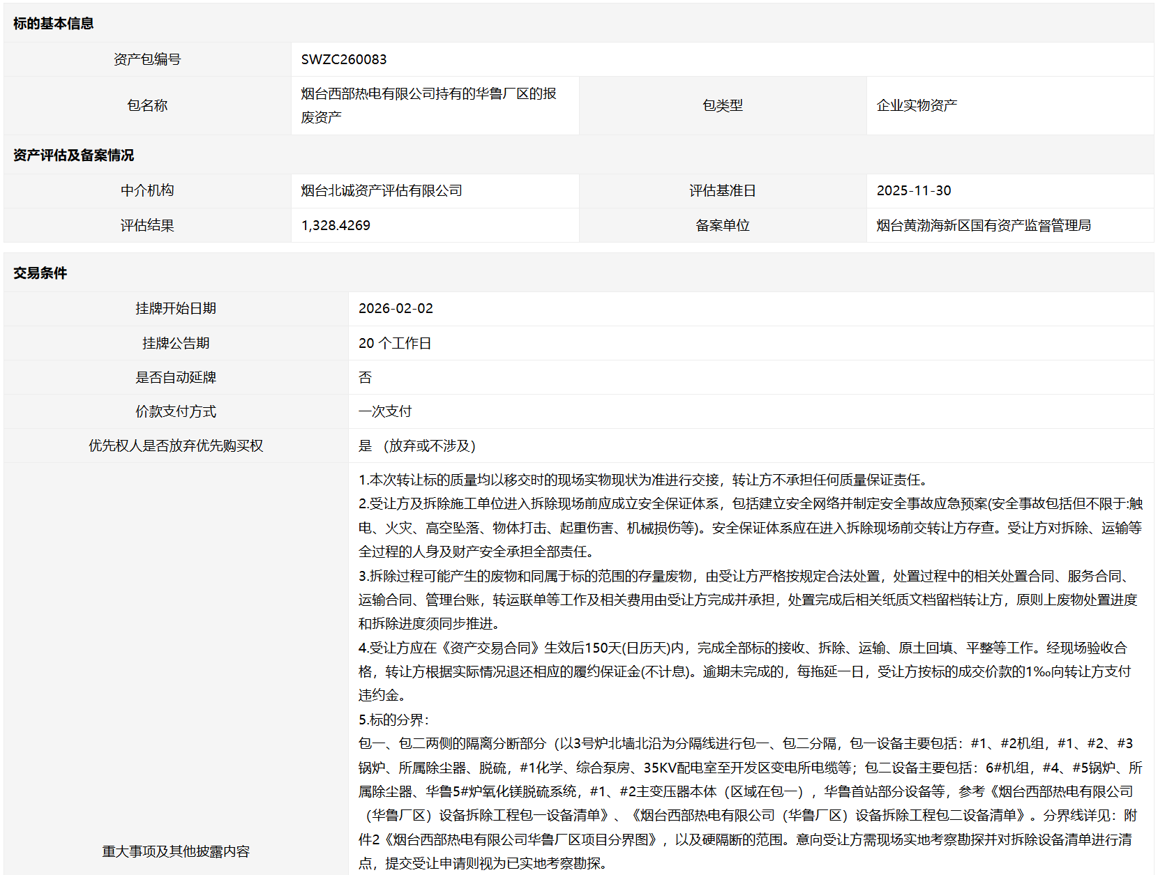 煙臺(tái)西部熱電有限公司持有的華魯廠區(qū)的報(bào)廢資產(chǎn)